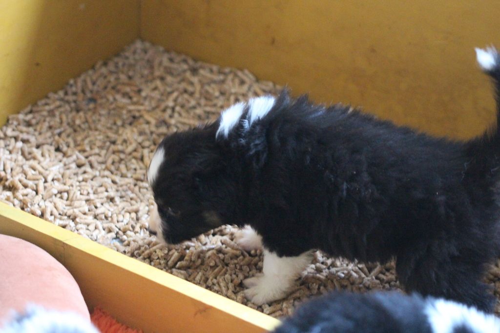 Petit aménagement dans la caisse de nurserie, un coin pipi caca... Les Loulous ne savent pas encore à quoi ça sert mais il tâte le terrain... Un peu...